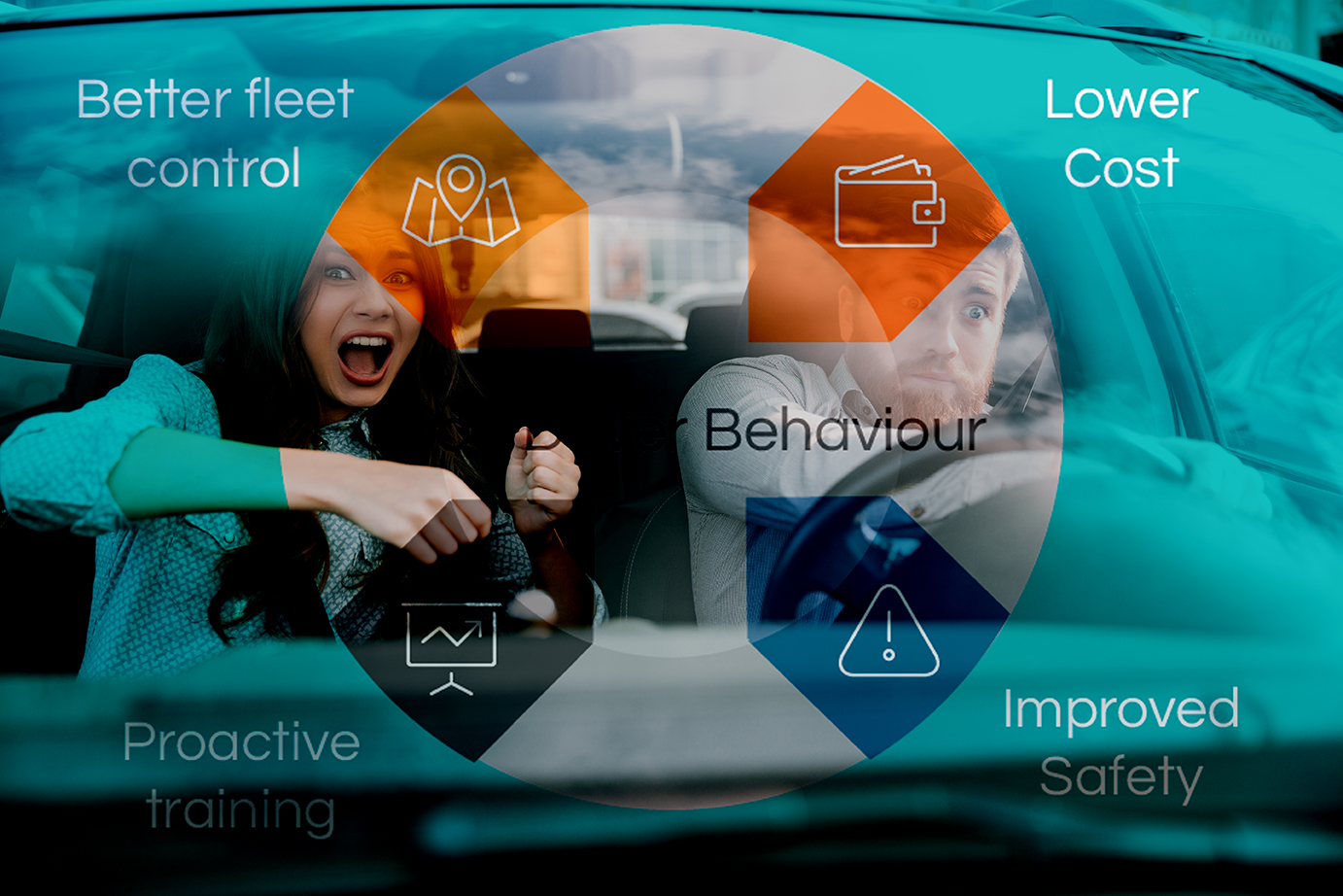 Driving-behaviour scoring (harsh braking, rapid acceleration, speeding, cornering) enables insurers to provide safer-driver discounts.